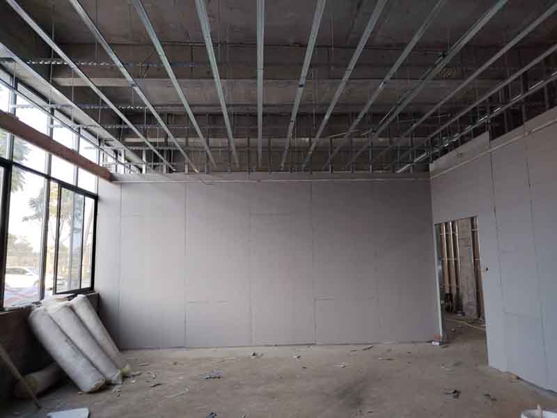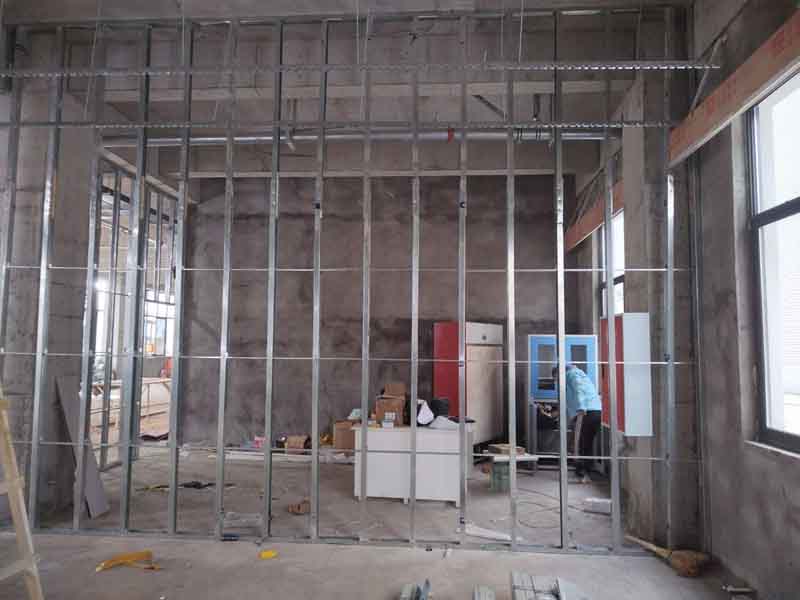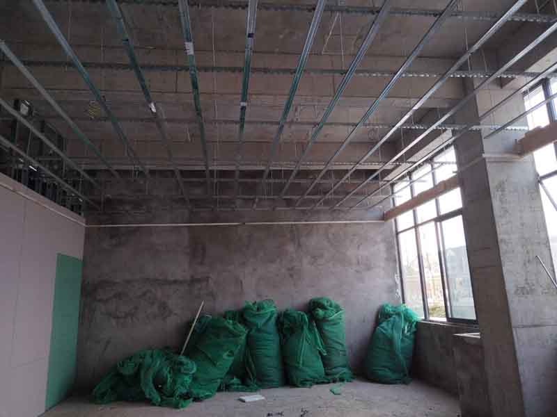 今日施工內容:1.隔墻龍骨吊頂龍骨架設 2.隔墻封板 3.電工照明線路鋪設