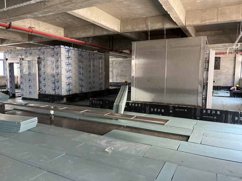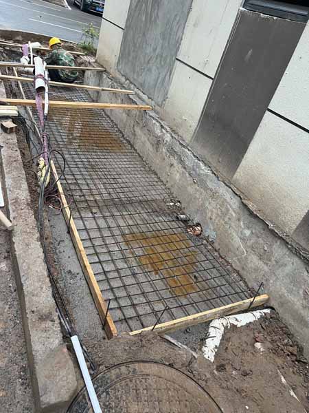 1、登車橋,升降梯基礎砌筑 2、層擠塑板施工 3、層鋼筋及排水溝完成。