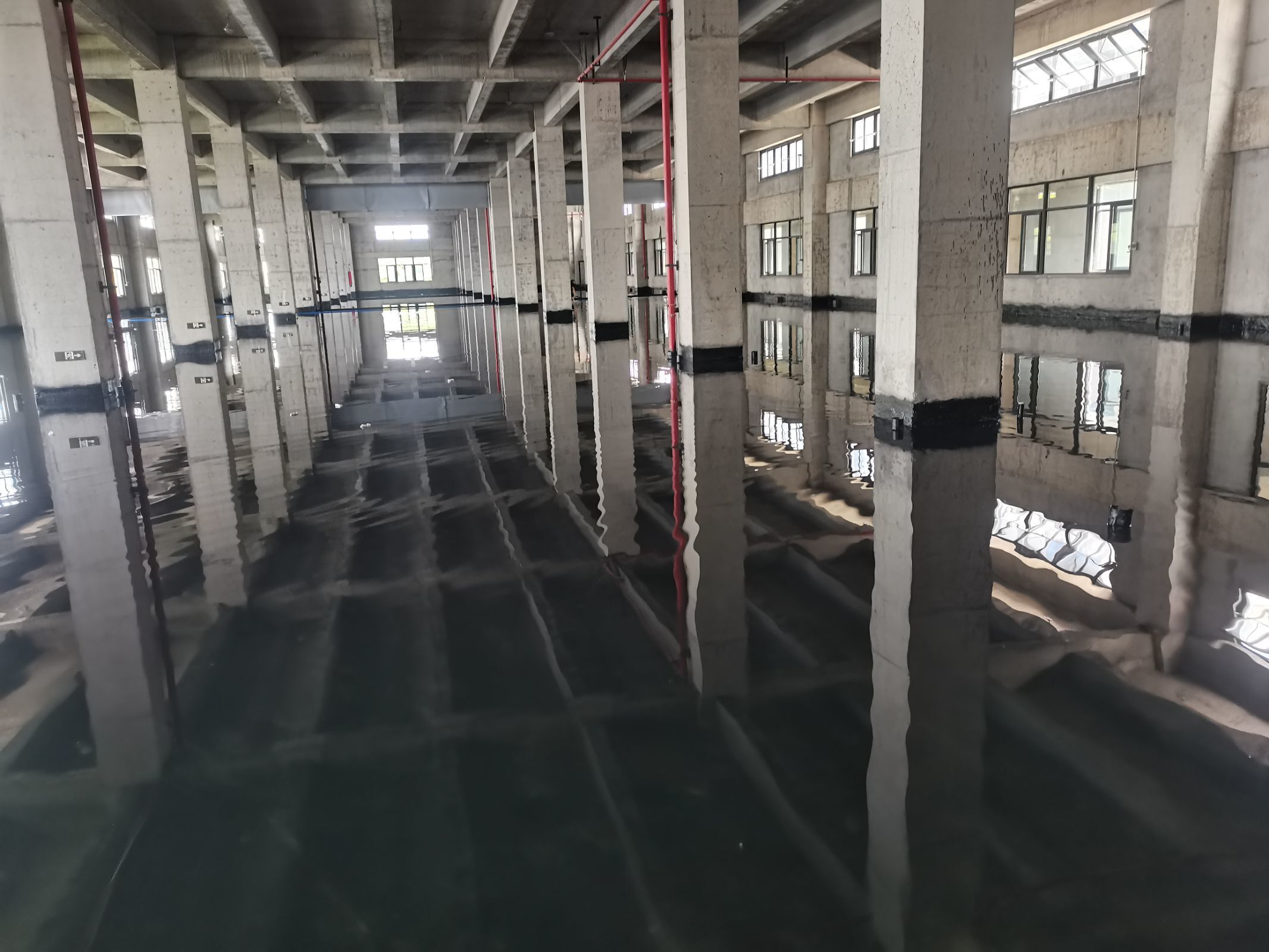 1.1號樓排水完成80%。 2號樓閉水完成。 2、污水處理設備基礎植筋及關模完成。