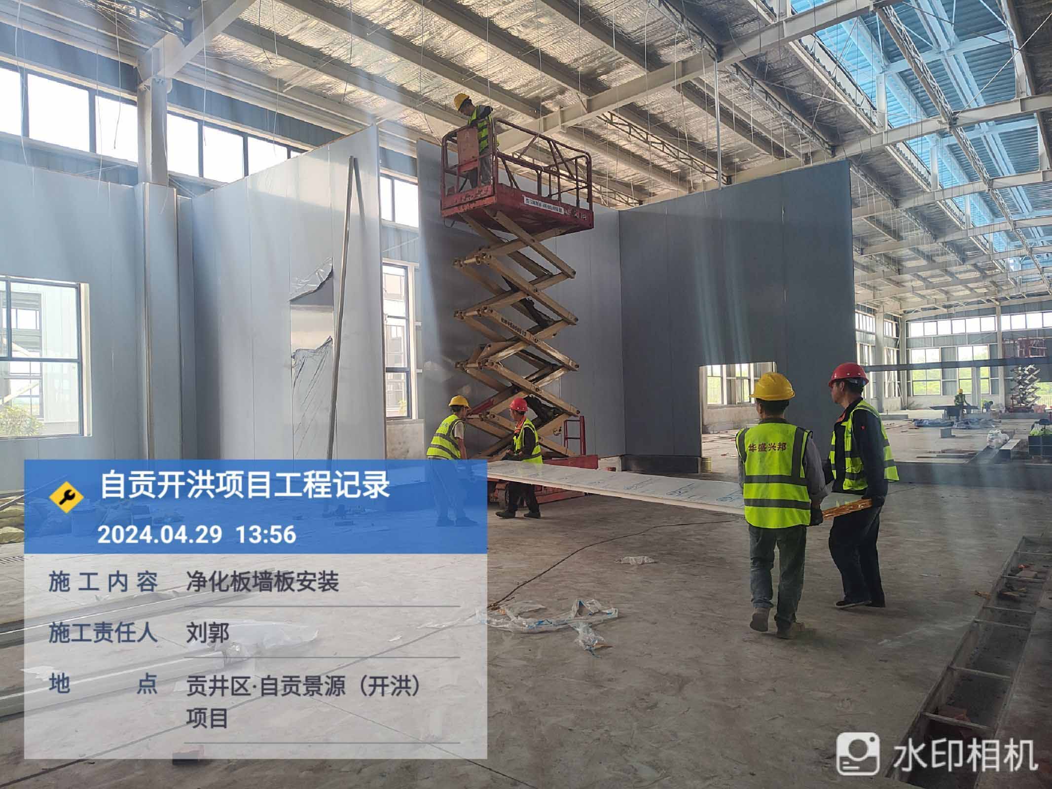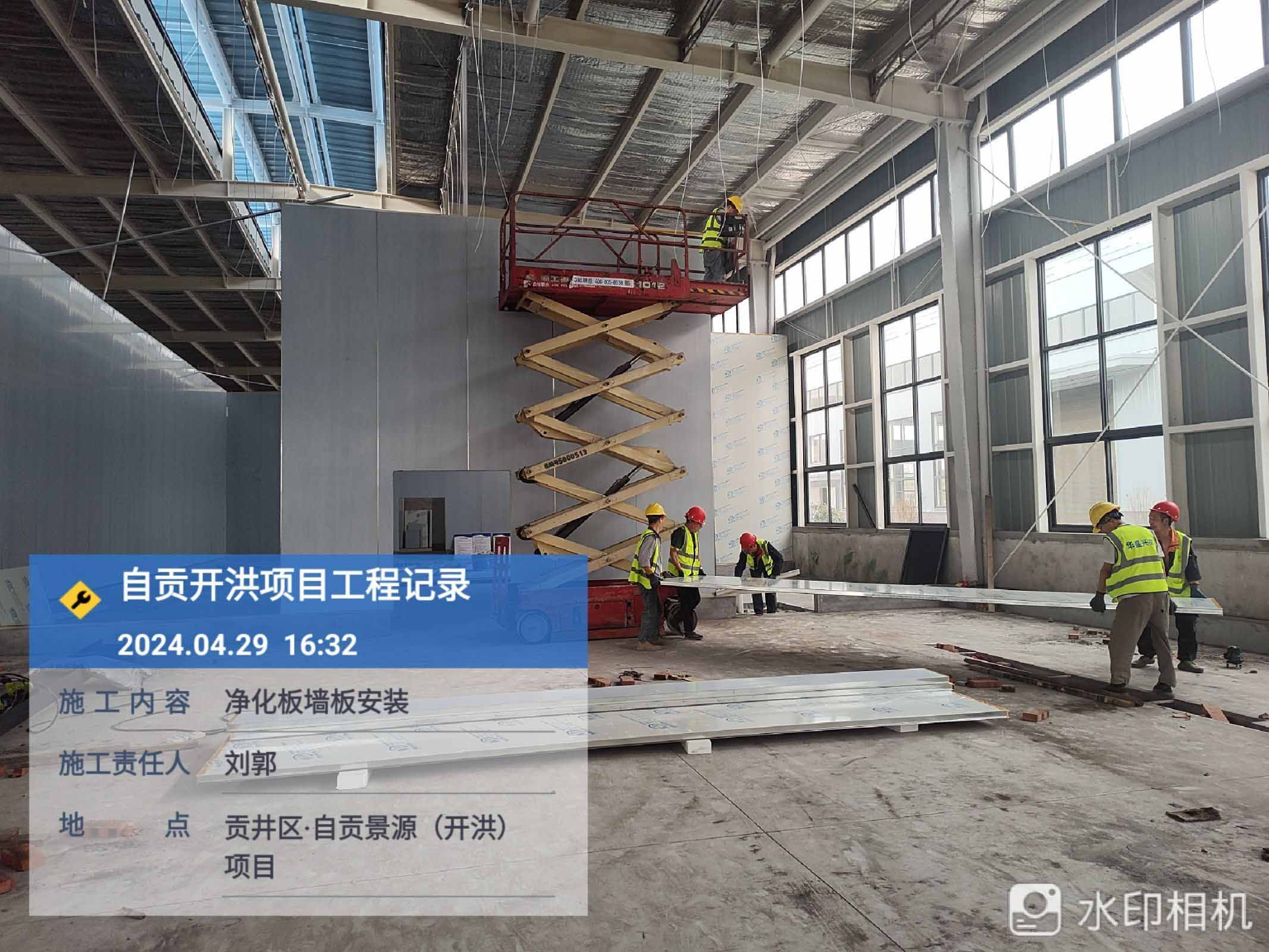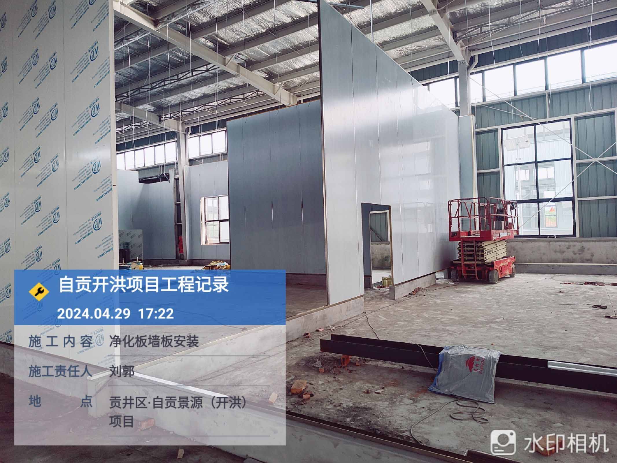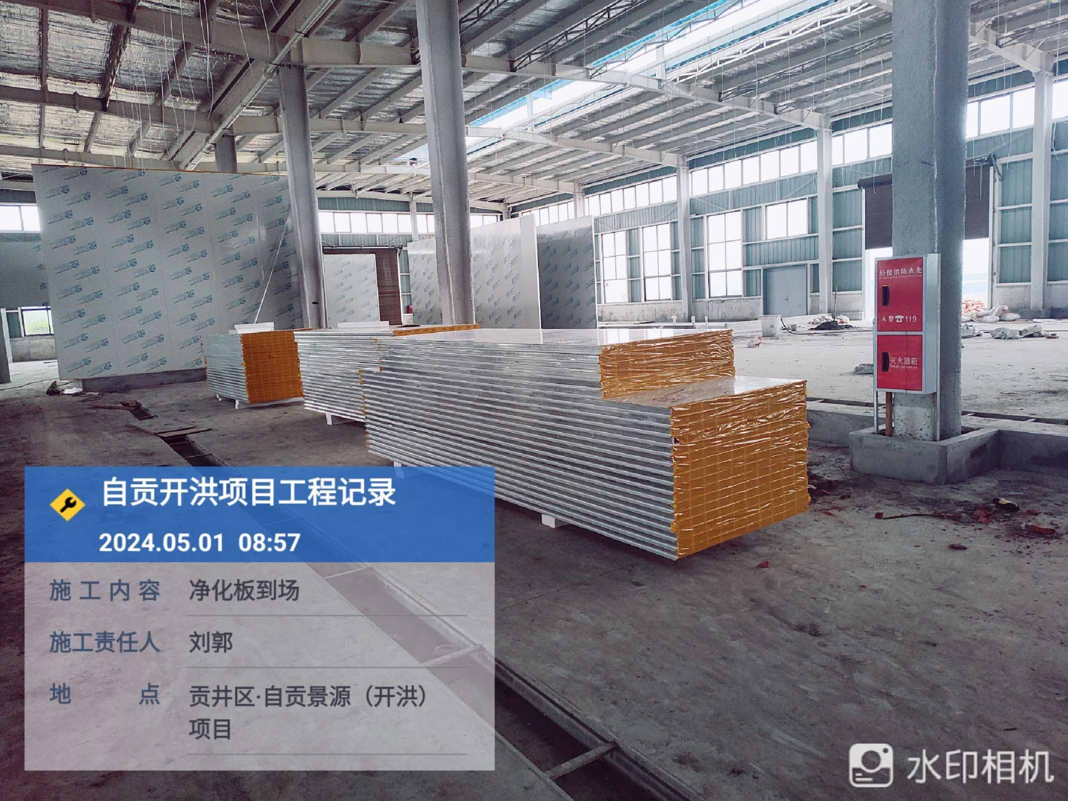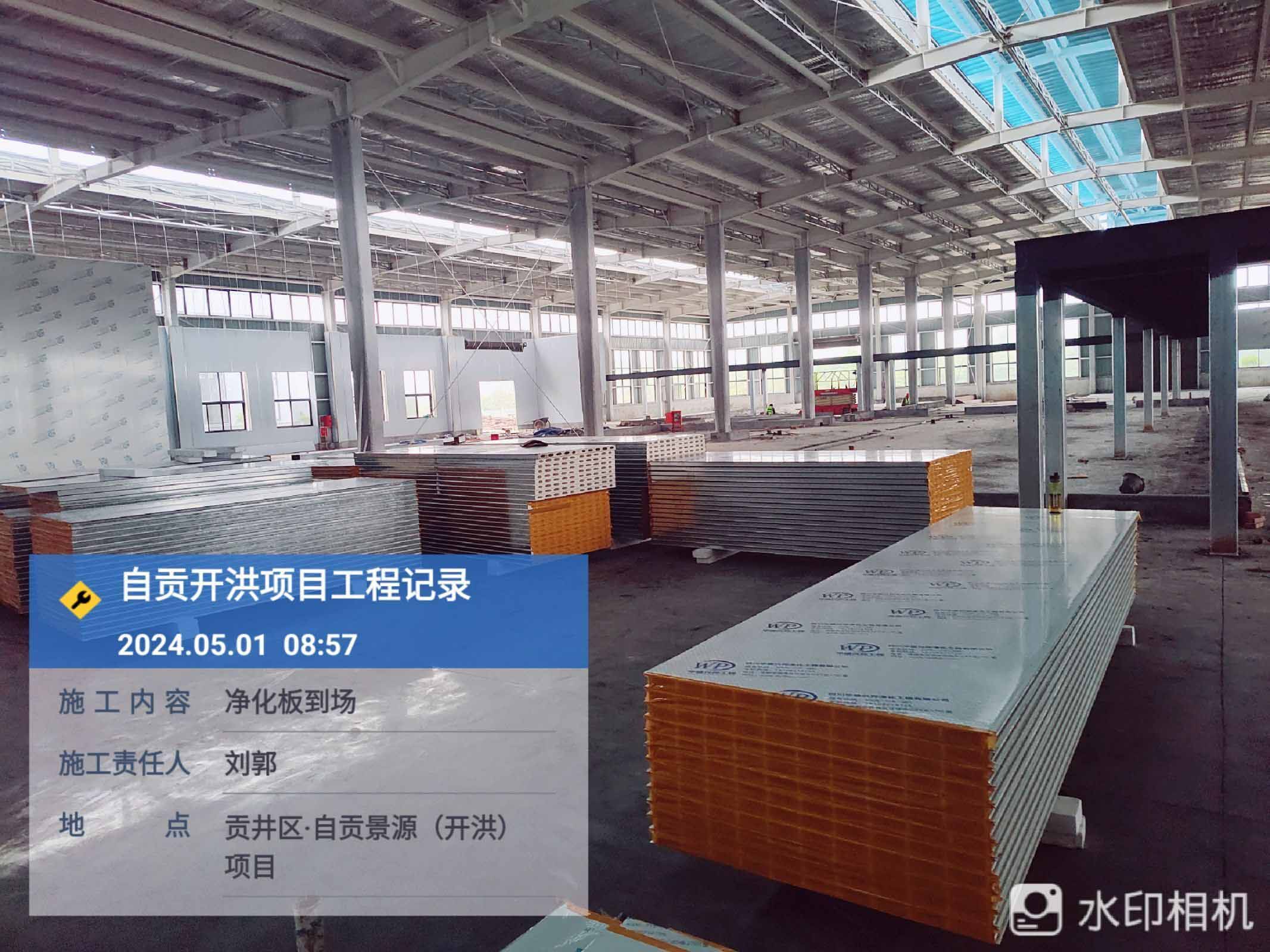 1、參觀走道鋼柱擋水墻砌筑抹灰完成80% 2、進化板吊頂安裝 3、凈化板墻板安裝 4、到場凈化板及鋁材卸貨