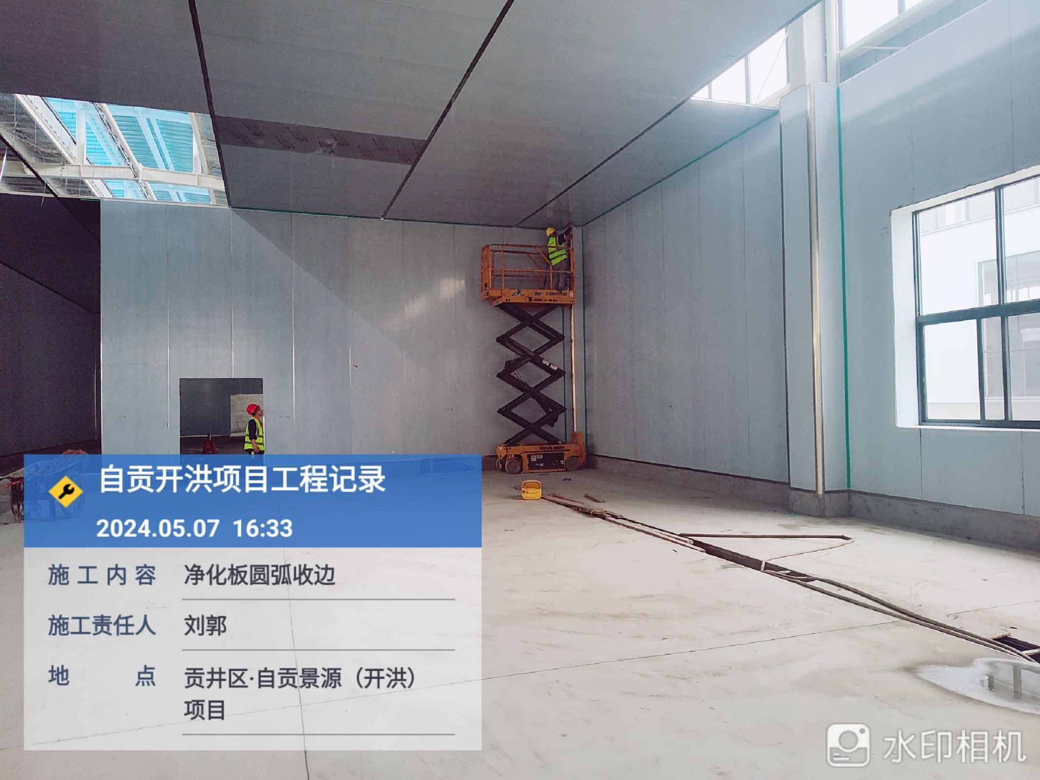 1、進化板吊頂安裝 2、凈化板打膠圓弧收邊施工 3、場地衛生清理