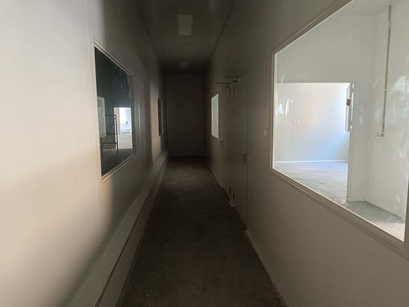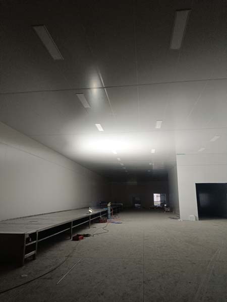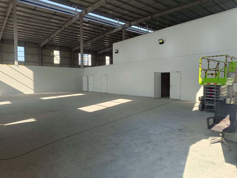1.車間凈化板安裝完成。圓弧收邊,打膠基本完成。2、衛生打掃